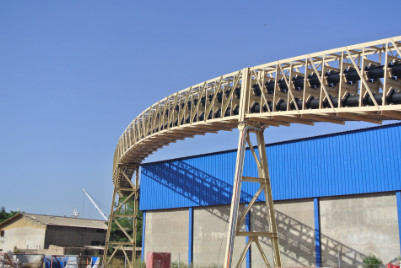 圓管帶式輸送機是傳統帶式輸送機的升級產品,具有不受空間和角度限制及完全封閉高環保性能的特點。隨著江蘇永鋼集團48°大傾角水平轉彎圓管帶式輸送機、寶鋼圓管輸送系統以及塞內加爾GCO圓管帶式輸送系統等多個項目相繼投產使用,我公司已擁有一整套成熟的、具有自主知識產權和專利的圓管帶式輸送機技術,可設計和制造管徑為Φ100~Φ650mm系列產品。